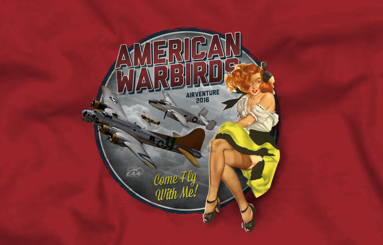 The assignment was to create an appealing apparel graphic for the guests of the major aircraft association we were assisting using vintage WWII elements.